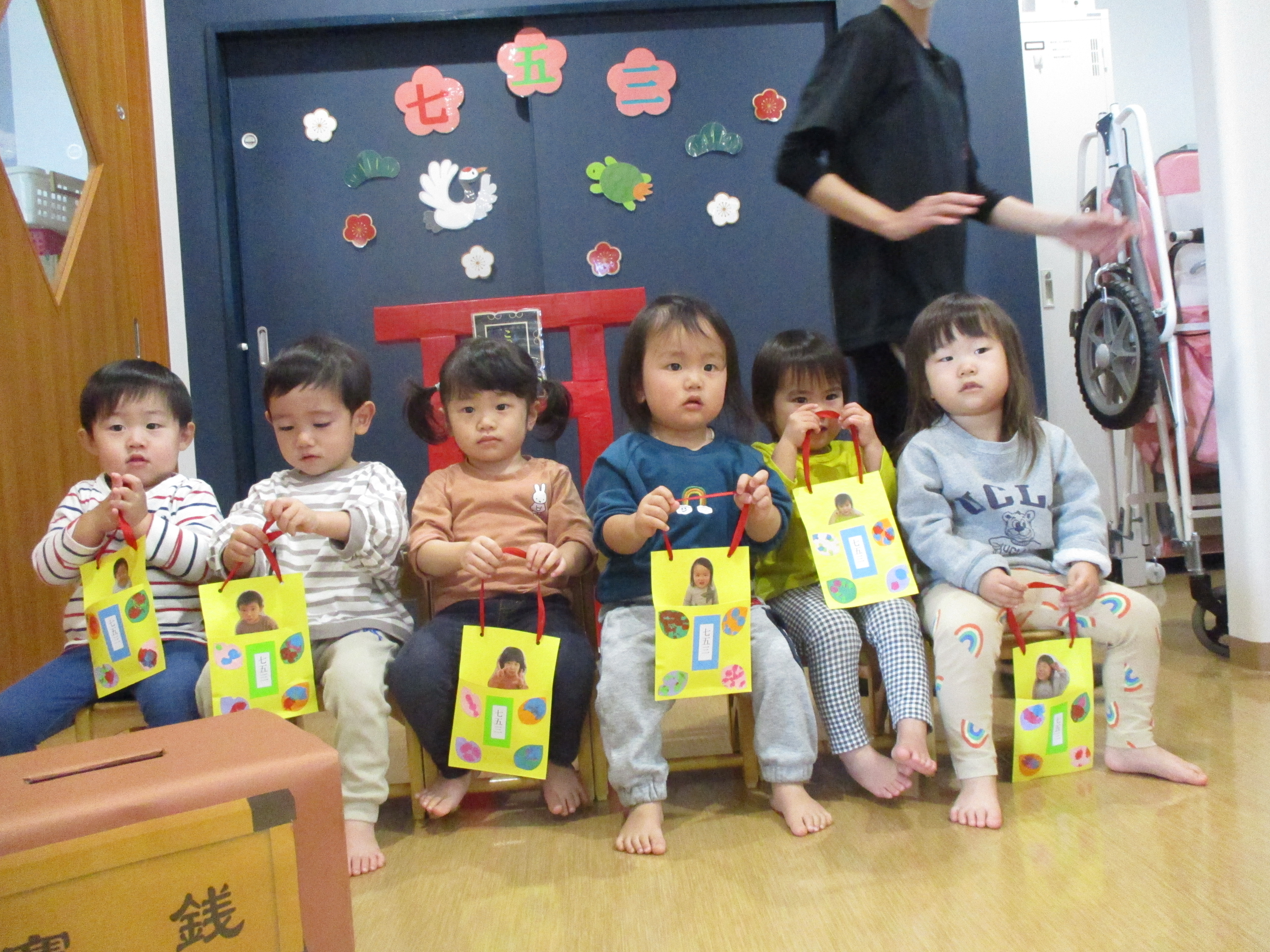 その後、手作りの千歳飴袋を持って記念撮影♪