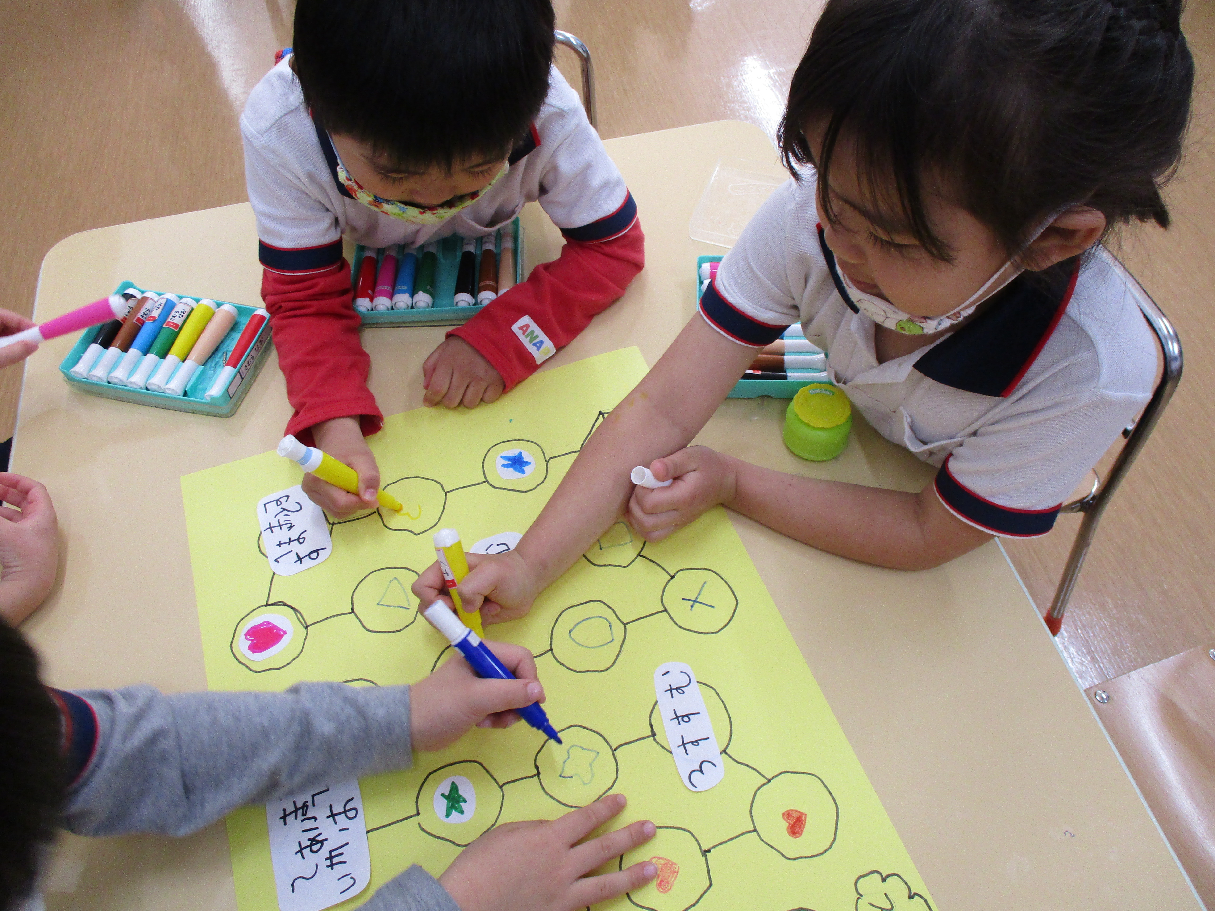 さくらグループさんが文字を書き、ひまわりグループさんが模様を描きました。